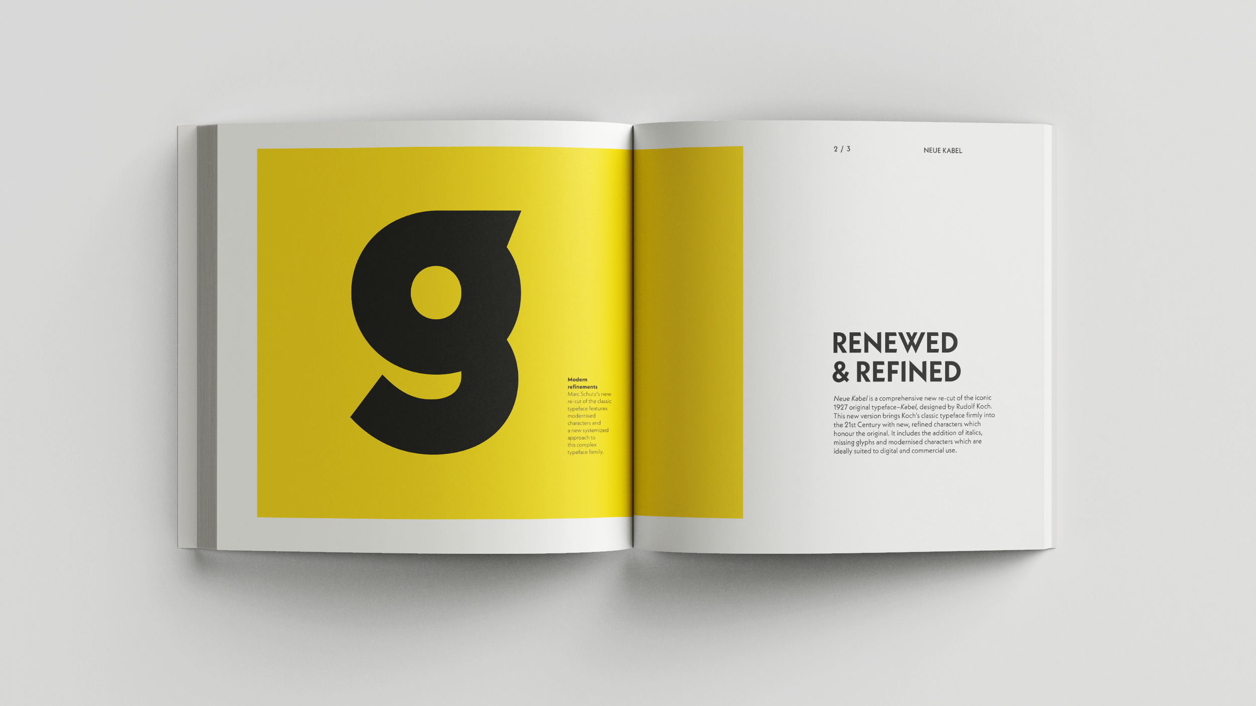 A typographic project created to celebrate the merits of Neue Kabel, a modern cut of the classic German typeface. This design sought to use type as imagery; from the large hero images of characters and glyphs to the portrait of Mr Kabel himself, created entirely by using only the words Neue Kabel in three weights, set in the typeface itself.